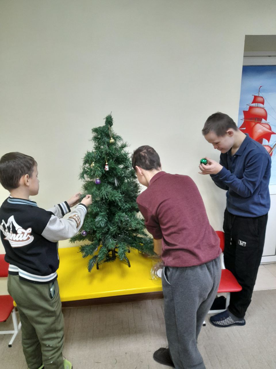 Приняли участие в украшении новогодней ёлки дети, посещающие группу кратковременного пребывания "Передышка".