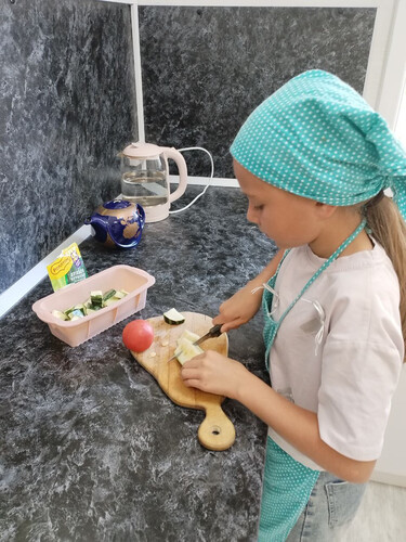 В СРЦН Усольского района Семейного МФЦ , в Семейной мастерской по направлению кулинарного мастерства в "Семейном кафе", юная кулинарка Кристина предложила приготовить овощное рагу из кабачка в аэрогриле, не смотря на юный возраст она прекрасно с этим справилась.