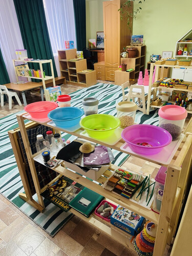 Благодаря совместному вкладу в это важное дело, для удобства и полноценного развития ребят, задуманная идея воплотилась в жизнь, а результат превзошел все ожидания — стены окрашены в нежные тона, бархатные портьеры цвета листвы, экологичные деревянные стеллажи с завораживающими материалами Монтессори преобразили пространство.