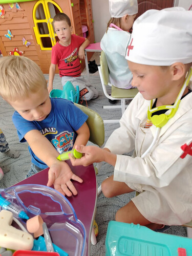 Я врачом наверно буду, Стану я лечить людей! Буду ездить я повсюду И спасать больных детей! Игра — ведущий вид деятельности дошкольников. В сюжетно-ролевых играх отражаются представления детей об окружающем мире, взаимоотношениях и профессиональных обязанностях людей. Ребёнок переносится из повседневной жизни: примеряет интересную роль, включает фантазию для действия в придуманной ситуации. Малыши любят играть в сюжетно-ролевые игры. Особенно им нравится лечить своих кукол. Связано это с тем, что каждый уже болел и ему приходилось принимать лекарство. В СРЦН Усольского района в рамках кружка «Играя — познаём мир» руководитель большую роль отводит сюжетно-ролевым играм. Сегодня ребята группы развития «Непоседы» знакомились с медицинскими инструментами. Воспитатель, используя наглядный игровой материал, рассказала о значении каждого. Малыши узнали, что врачи лечат не только людей, но и животных. Прочитали и обсудили стихотворение Корнея Чуковского «Доктор Айболит». Затем каждый побывал в роли врача. Девочки лечили своих любимых кукол, мальчики — животных. В игре детки эмоционально копировали врачей, подражая голосом, мимикой. Коллективные игры воспитывают у детей чувство дружбы, умение общаться друг с другом. Игровая деятельность принесла массу положительных эмоций и хорошее настроение на весь день. #СРЦНУсольскогорайона | |