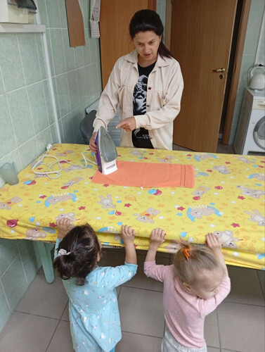 Затем ребята отправились в прачечную, где сотрудник Елена Ш. познакомила малышей с таким опасным предметом как утюг и подробно разъяснила правила пользования им. Занятие оказалось полезным, увлекательным и информативным. Дети внимательно слушали рассказы педагогов и активно участвовали в игровой деятельности.