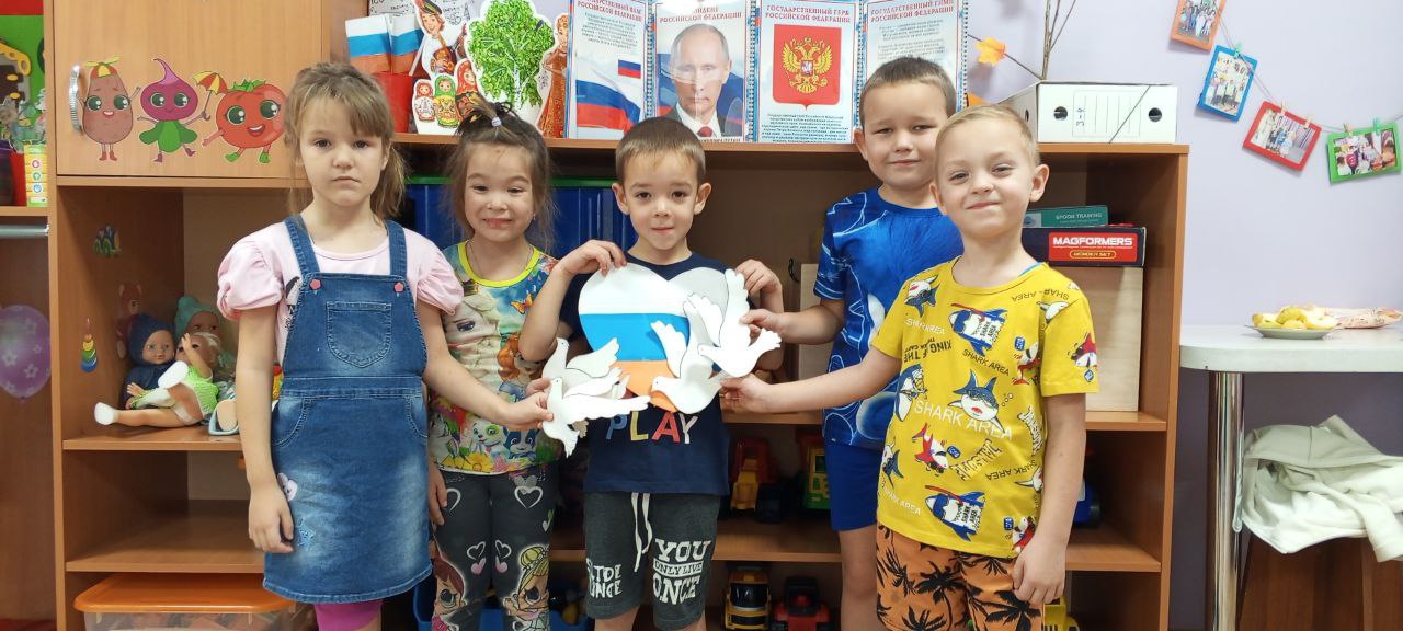 В отделении «Малютка» прошёл цикл мероприятий ко Дню народного единства и дню воинской славы России. Дети группы «Развитие» посетили памятные места нашего города. Первая экскурсия была к памятнику основателям города Усолье-Сибирское братьям Михалёвым Анисиму и Гаврилу. Дети узнали много интересных исторических фактов о нашем городе. Продолжилась экскурсия к памятнику В.Ф. Маргелову. Дети узнали об участнике ВОВ, который руководил дивизиями при форсировании Днепра, за что в марте 1944 года был удостоен звания Героя Советского Союза. Также посетили памятник «Штурмовая бригада» — олицетворение героизма, мужества и отваги русских солдат, участвующих в спецоперации. Воспитатель группы провела занятие аппликацией «Голубь – символ мира и единения». Занятие сопровождалось рассказом о России, россиянах, которые внесли большой вклад в единение нашей Родины. На занятии по АФК прошло спортивное мероприятие: «В единстве наша сила». Дети играли в игры, проводились эстафеты.