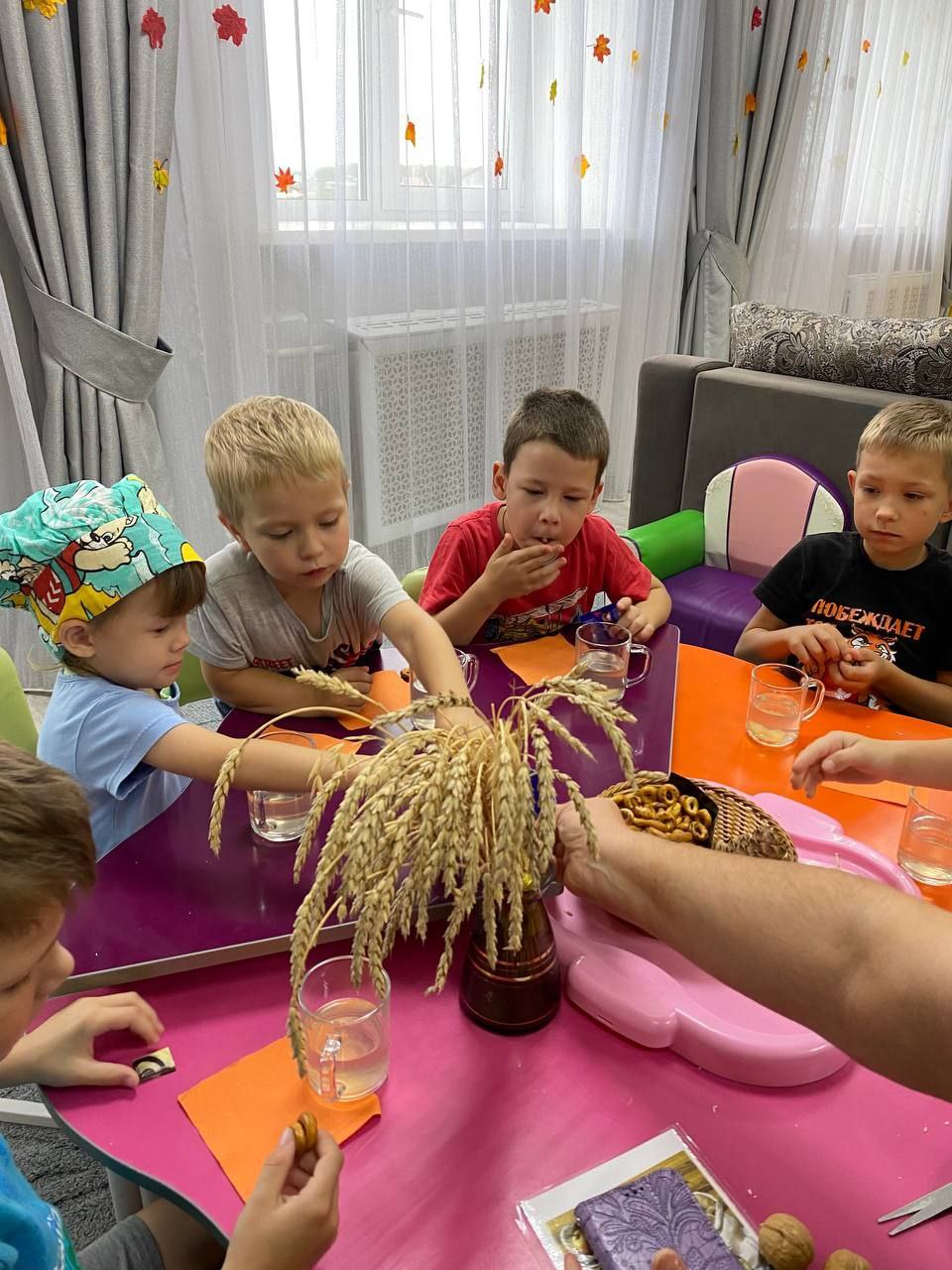 Ореховый спас. На празднике ребята дошкольного и младшего школьного возраста познакомились с традициями и понятиями этого народного праздника, узнали, что такое пшеница, как она растёт, и как из неё делают муку для приготовления хлеба. А также, постряпали из солёного теста баранки. Закончилось познавательное мероприятие чаепитием.