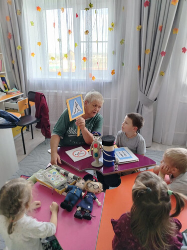 Азбука безопасности. Воспитатель представила вниманию детей наглядный материал, вместе разобрали несколько вопросов, практические ситуации «Азбука пешехода», «Перекресток загадок», «Авто мульти», «Говорящие знаки», «Первая медицинская помощь».