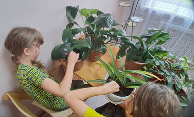 Уход за растениями. Ежедневно мальчишки и девчонки группы «Дружелюбчики» помогают воспитателям следить за порядком, соблюдать чистоту и уют в стенах их родного учреждения, ухаживать за растениями, поливать и рыхлить землю, чтобы цветы радовали своим ярким цветом и здоровым видом.
