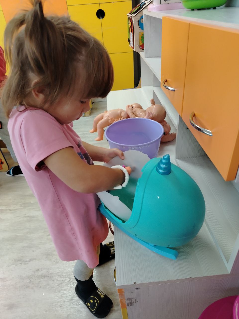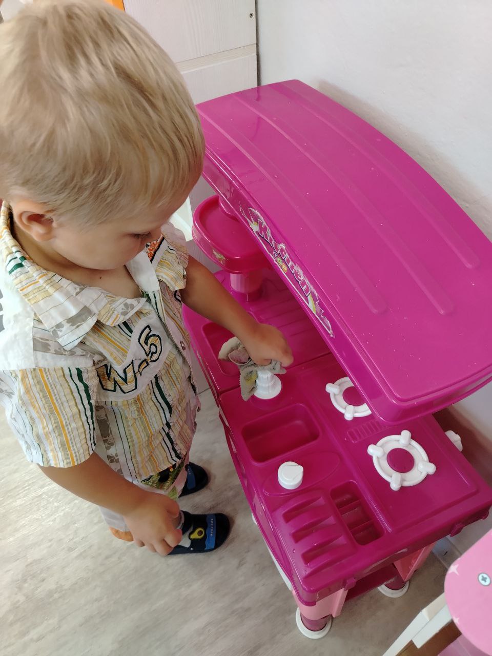 Сегодня, в выходной день в группе открылась «мастерская добрых, полезных дел». Прежде чем приступить к трудовой деятельности, воспитатель провела беседу, с показом определенных приемов и техник труда. Затем каждый индивидуально выполнял поручения. Дети провели влажную уборку в игровых зонах, мыли игрушки красиво расставляли на полках. Каждый вложил максимум стараний и умений. В группе стало свежо и уютно.